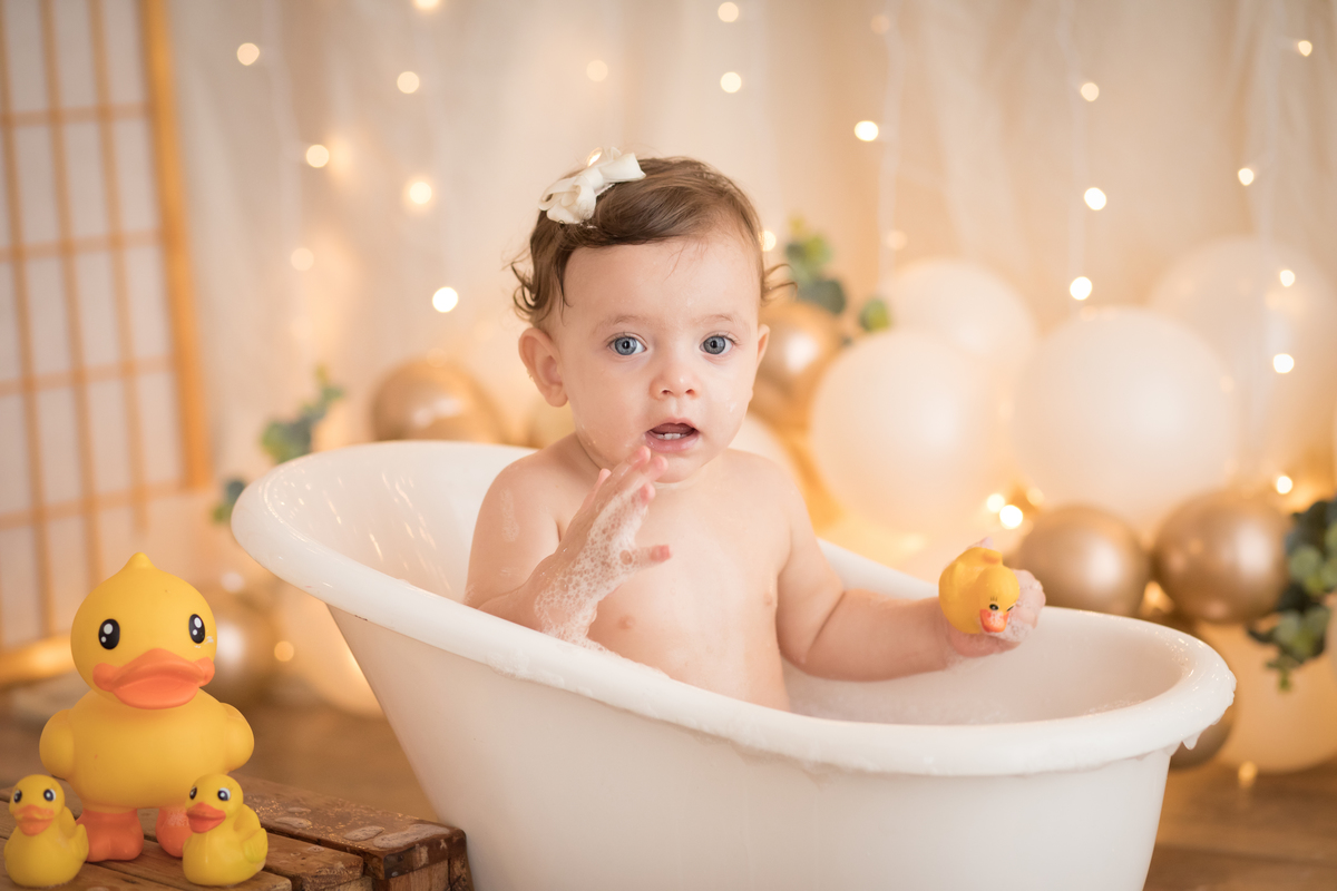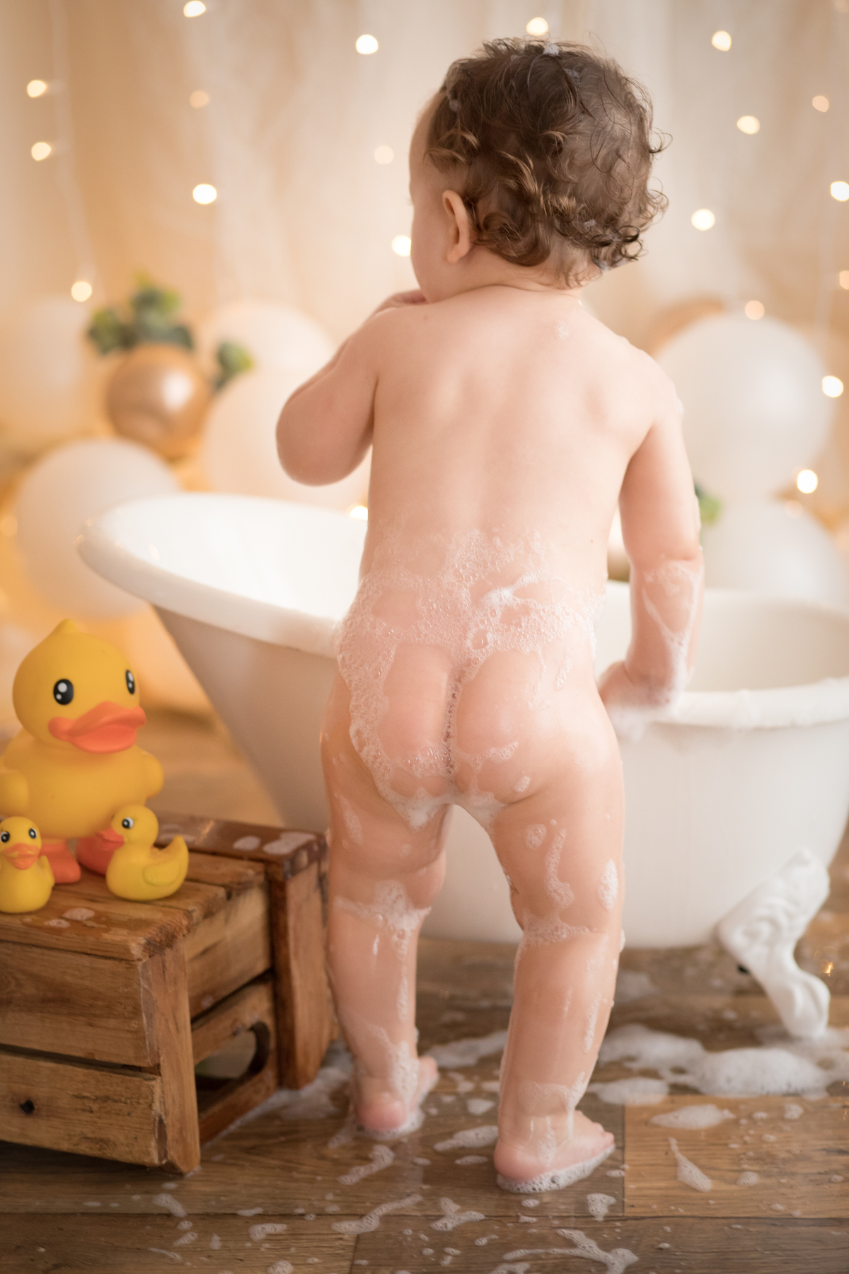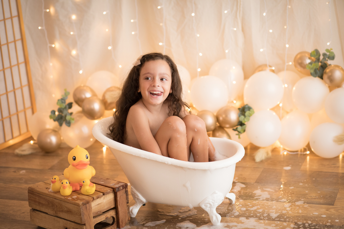 Este momento rende fotos incríveis, pois não há criança que não goste de um banho quentinho, não é mesmo?